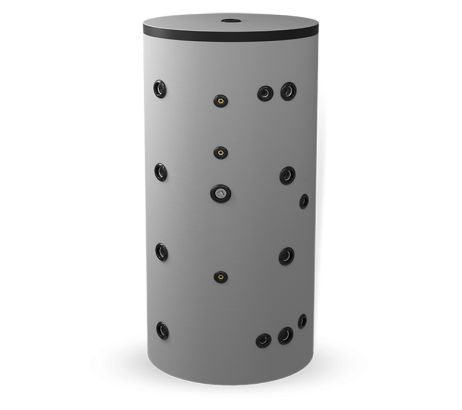 Буферен съд 500л (с една черна и една неръждаема серпентина) дава възможност за акумулиране на топлинна енергия едновременно от два различни топлоизточника – например: слънчева система и котел.